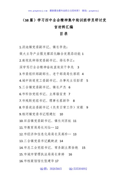 / (38篇)学习四中全会精神集中轮训班学员研讨发言材料汇编
