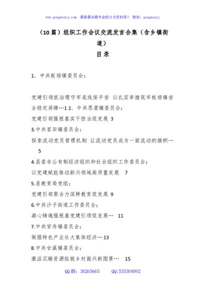 (10篇)组织工作会议交流发言合集(含乡镇街道)
