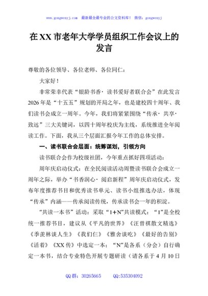 / 在市老年大学学员组织工作会议上的发言
