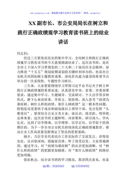 / 副市长、市公安局局长在树立和践行正确学习教育读书班上的结业讲话
