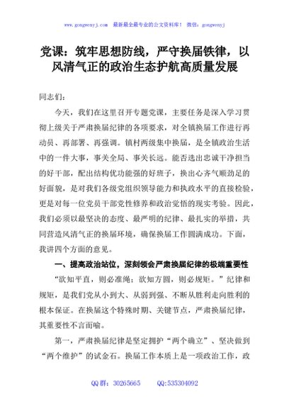 / 党课:筑牢思想防线,严守换届铁律,以风清气正的政治生态护航高质量发展