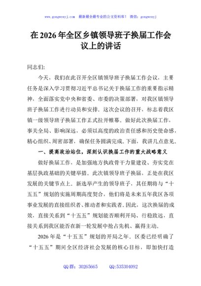 / 在2026年全区乡镇领导班子换届工作会议上的讲话