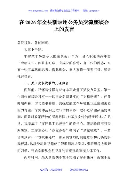 / 在2026年全县新录用公务员交流座谈会上的发言
