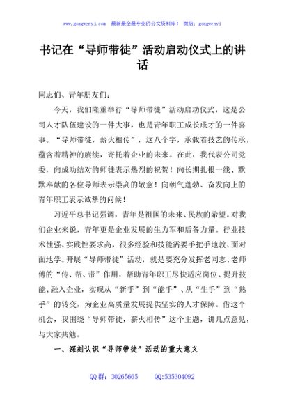 / 书记在“导师带徒”活动启动仪式上的讲话
