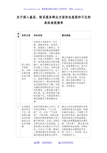 / 关于深入基层、联系服务群众方面存在差距和不足的具体表现清单