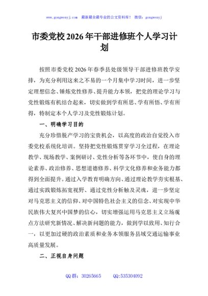 / 市委党校2026年干部进修班个人学习计划