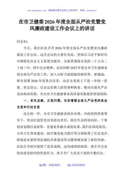 / 在市卫健委2026年度全面从严治党暨党风廉政建设工作会议上的讲话