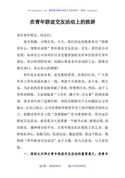 / 在青年联谊交友活动上的致辞