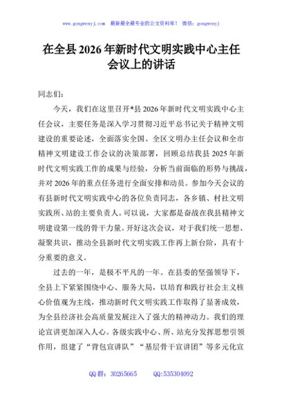 / 在全县2026年新时代文明实践中心主任会议上的讲话