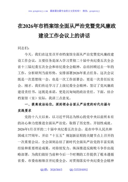 / 在2026年市档案馆全面从严治党暨党风廉政建设工作会议上的讲话