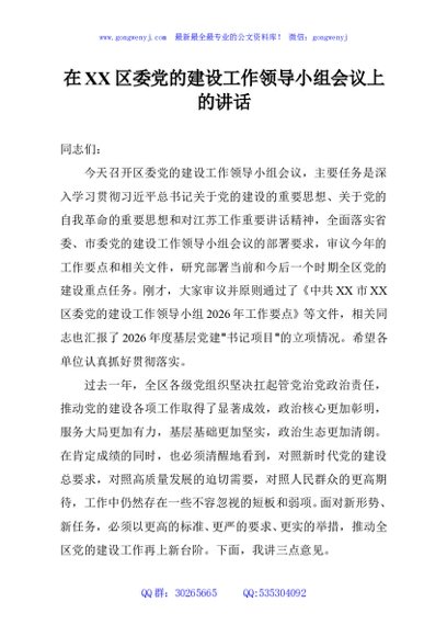 / 在XX区委党的建设工作领导小组会议上的讲话