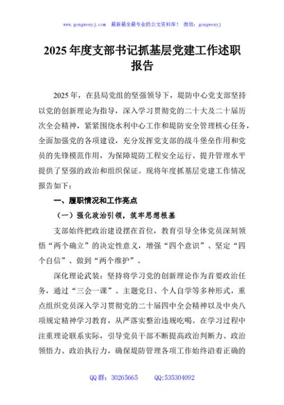 / 2025年度支部书记抓基层党建工作述职报告