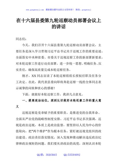/ 在十六届县委第九轮巡察动员部署会议上的讲话