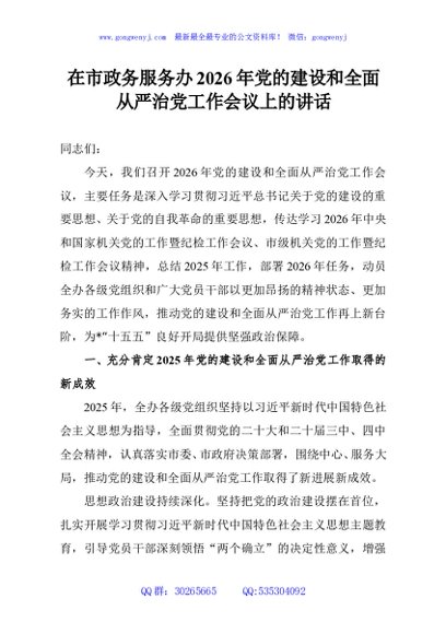/ 在市政务服务办2026年党的建设和全面从严治党工作会议上的讲话
