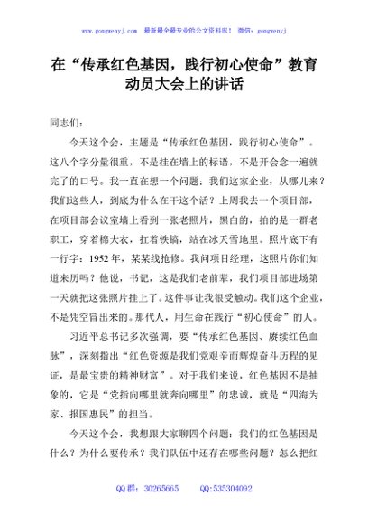 / 在“传承红色基因,践行初心使命”教育动员大会上的讲话