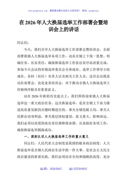 / 在2026年人大换届选举工作部署会暨培训会上的讲话