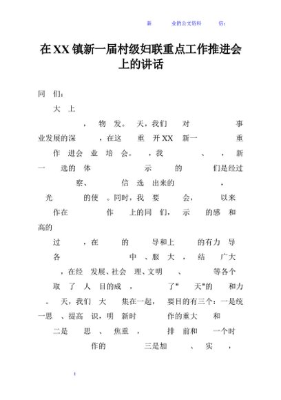 / 在XX镇新一届村级妇联重点工作推进会上的讲话