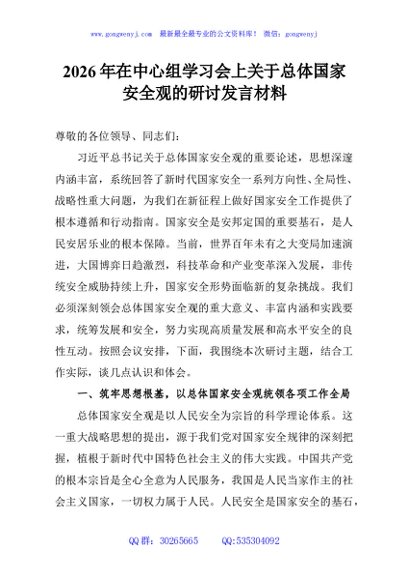/ 2026年在中心组学习会上关于总体国家安全观的研讨发言材料
