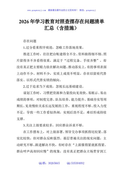 / 2026年学习教育对照查摆存在问题清单汇总(含措施)