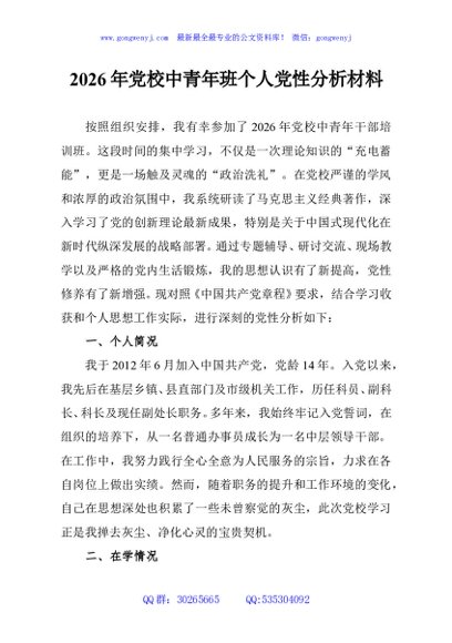 / 2026年党校中青年班个人党性分析材料