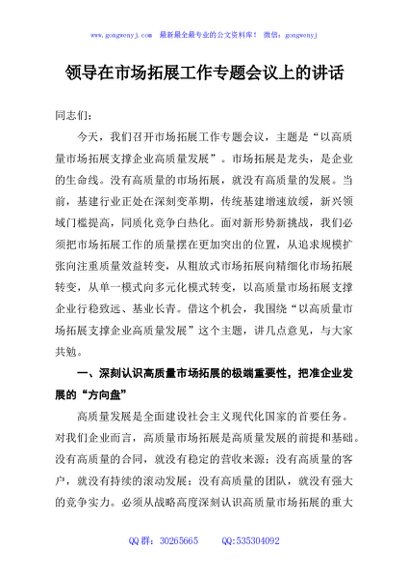 / 领导在市场拓展工作专题会议上的讲话