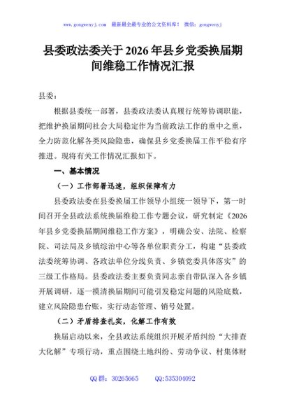 / 县委政法委关于2026年县乡党委换届期间维稳工作情况汇报