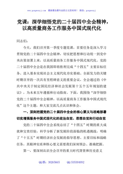 / 党课:深学细悟党的二十届四中全会精神,以高质量商务工作服务中国式现代化