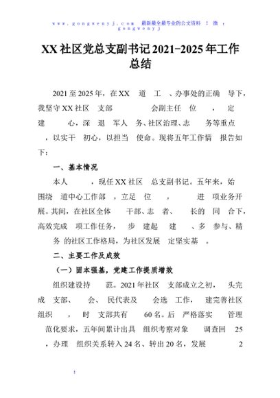 / XX社区党总支副书记2021-2025年工作总结
