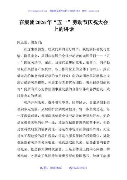 / 在集团2026年“五一”劳动节庆祝大会上的讲话