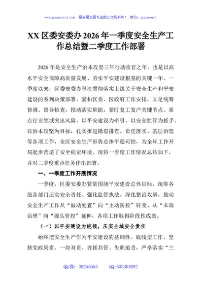 / XX区委安委办2026年一季度安全生产工作总结暨二季度工作部署