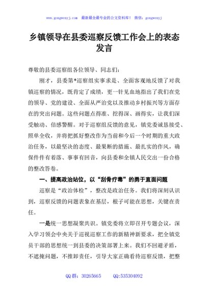 / 乡镇领导在县委巡察反馈工作会上的表态发言