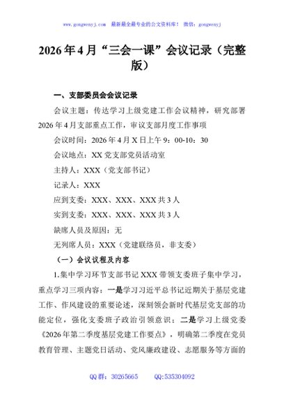 / 2026年4月“三会一课”会议记录(完整版)