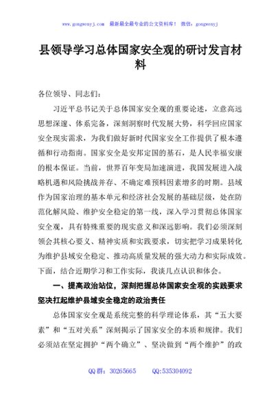 / 县领导学习总体国家安全观的研讨发言材料