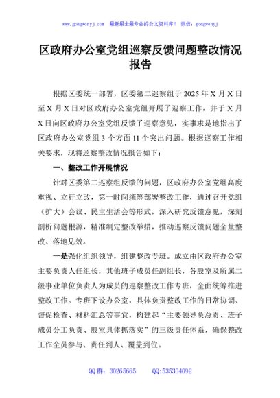 / 区政府办公室党组巡察反馈问题整改情况报告