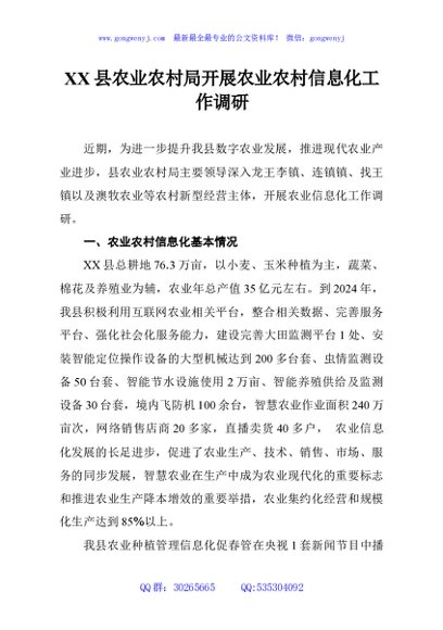 / XX县农业农村局开展农业农村信息化工作调研