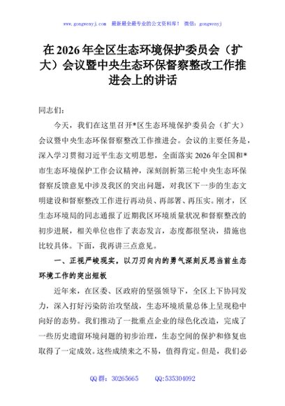 / 在2026年全区生态环境保护委员会(扩大)会议暨中央生态环保督察整改工作推进会上的讲话