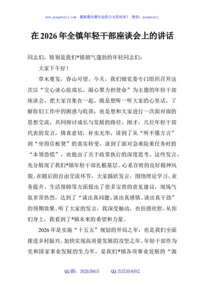 / 在2026年全镇年轻干部座谈会上的讲话