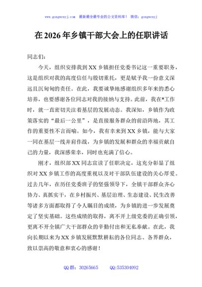 / 在2026年乡镇干部大会上的任职讲话