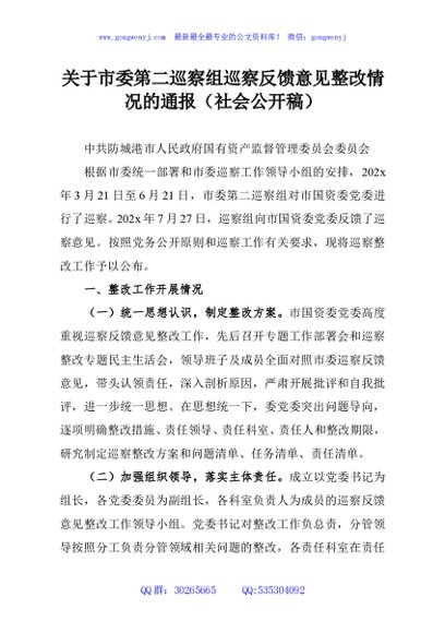 / 关于市委第二巡察组巡察反馈意见整改情况的通报(社会公开稿)