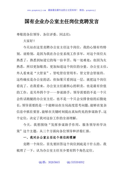 / 国有企业办公室主任岗位竞聘发言