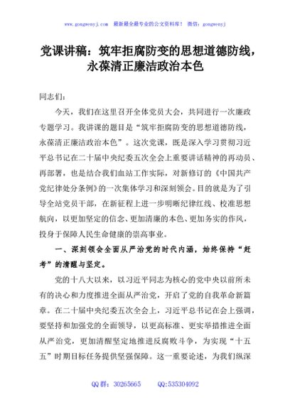 / 党课讲稿:筑牢拒腐防变的思想道德防线,永葆清正廉洁政治本色