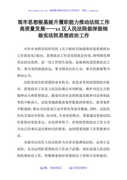 / 筑牢思想根基提升履职能力推动法院工作高质量发展——xx区人民法院做深做细做实法院思想政治工作