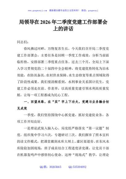 / 局领导在2026年二季度党建工作部署会上的讲话