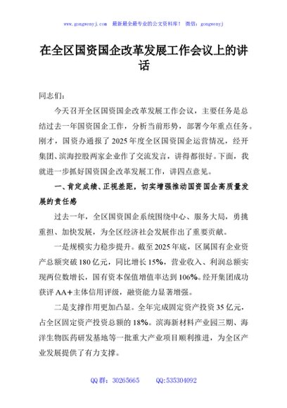 / 在全区国资国企改革发展工作会议上的讲话
