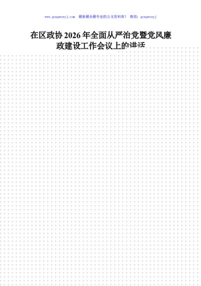 / 在区政协2026年全面从严治党暨党风廉政建设工作会议上的讲话
