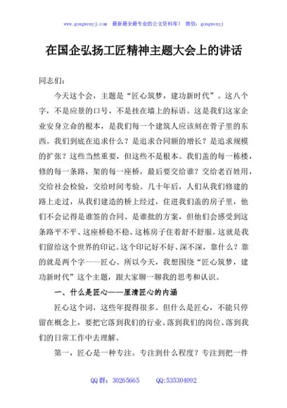 / 在国企弘扬工匠精神主题大会上的讲话