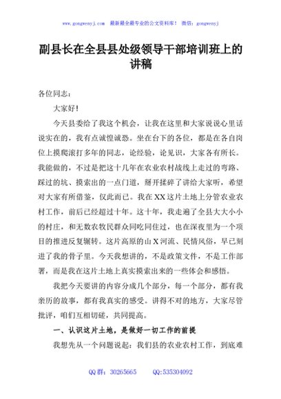 / 副县长在全县县处级领导干部培训班上的讲稿