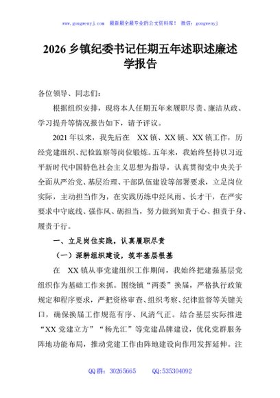 / 2026乡镇纪委书记任期五年述职述廉述学报告
