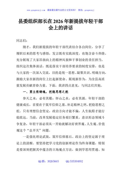 / 县委组织部长在2026年新提拔年轻干部会上的讲话