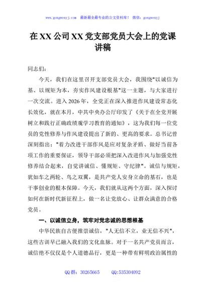 / 在XX公司XX党支部党员大会上的党课讲稿